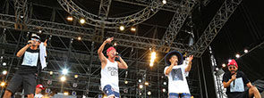 オーディエンスらの期待が高まる中、1曲目「BUMP OF CHIKEN」の『天体観測』でライブスタート!! ヒット曲として馴染みがあることもあり、初っ端からフィールドは大盛り上がり♪ 次曲『AKANE CHAN』では、フロントマンとしてステージを盛り上げようと新ボーカリストに多少の緊張感を感じながらも、がむしゃらに歌い上げる姿が印象的だった。