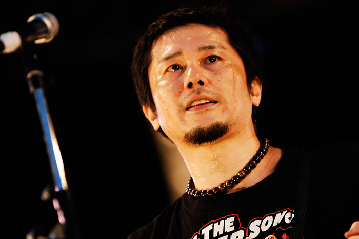 ただ、パンク・ロッカーとしての筋の通ったスピリットを真摯に観客に突き付けたのはその後だった。“なんかこうやって日本国旗を振っていると右翼に思える? 脱原発と言うと左翼? そんなことねえよな。今日はパンクなバンドが多いから言わせてもらうけど、そんなんでいいのか?”と包み隠さない言葉で想いを伝えると、“震災で学んだことを歌うわ”と告げて「Ricky Punks III」へ。