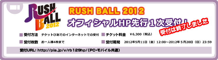 RUSH BALL 2012 オフィシャル先行4次受付 RUSH BALL 2012 オフィシャル先行受付