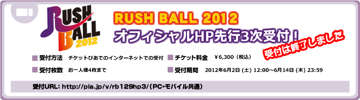 RUSH BALL 2012 オフィシャル先行3次受付 RUSH BALL 2012 オフィシャル先行受付